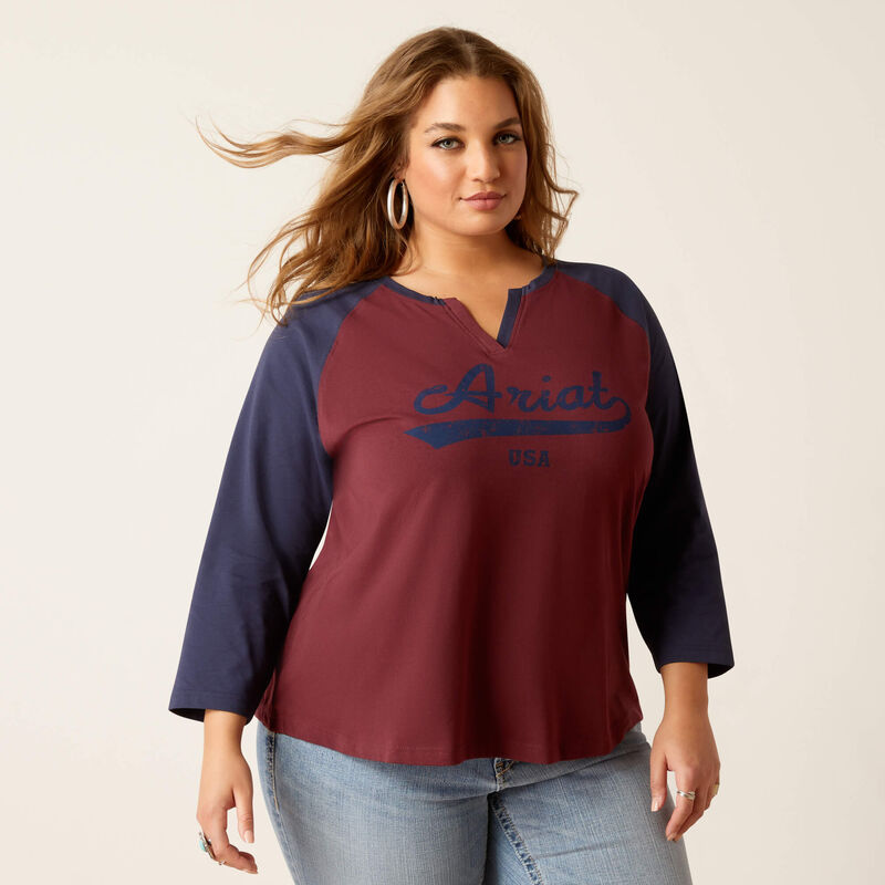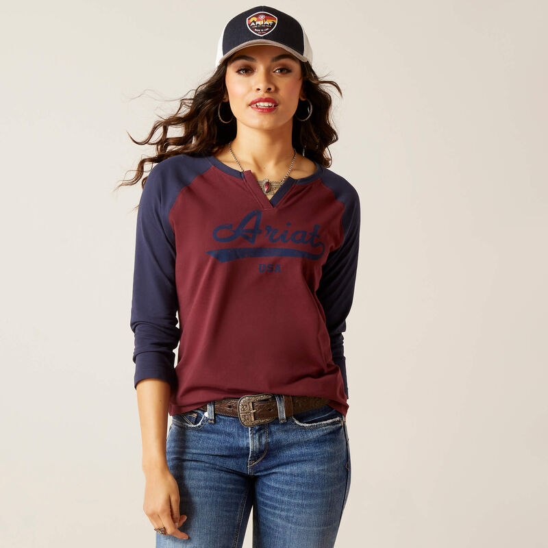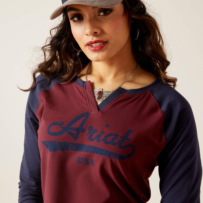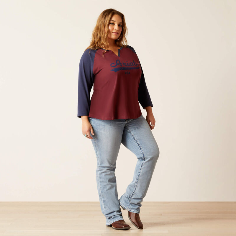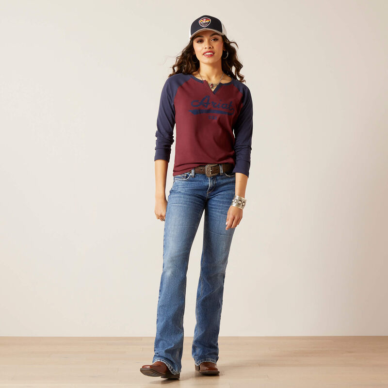 We updated the classic baseball tee with a sporty Ariat logo, super soft jersey fabric, and a modified V-neck. The result keeps you comfy from chore time to dinner time and everywhere in between.