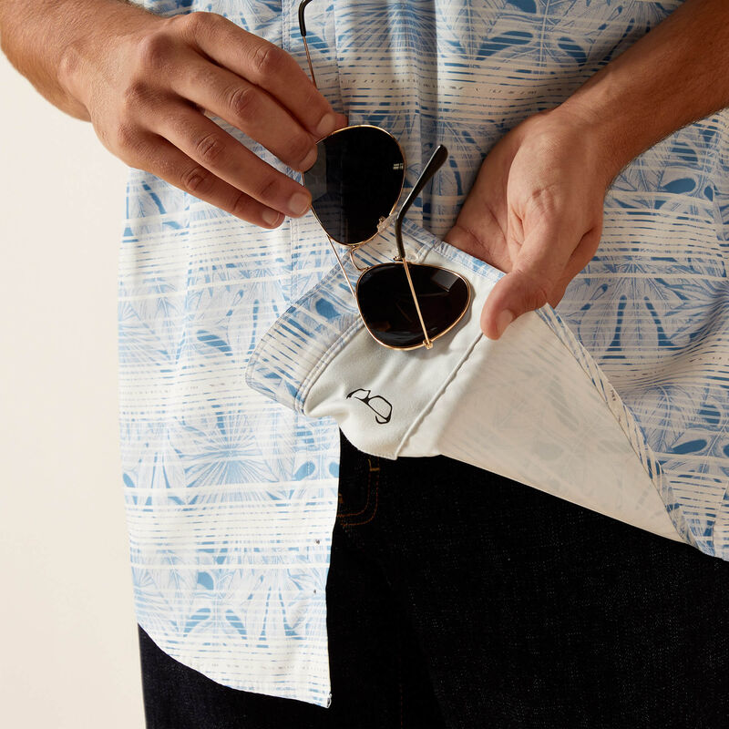 - Microfiber lens cloth is hidden in the hem for on-the-go cleaning