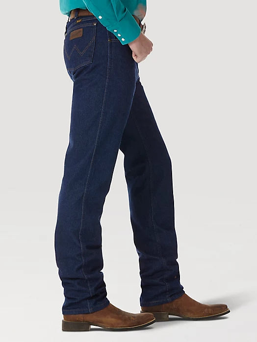 Cowboys in and out of the rodeo arena have been counting on Wrangler® Cowboy Cut® performance jeans to get them through their toughest days for decades. We're the go-to for men's Cowboy Cut® jeans because we've walked a mile in cowboy boots, and we know regular jeans just won't cut it. Featuring 20% longer lasting denim, a functional watch pocket, and smooth seams, these jeans are made to keep up and keep you comfortable. Premium performance Cowboy Cut® regular fit jeans are made to withstand bull riding, cattle roping, and everything in between.