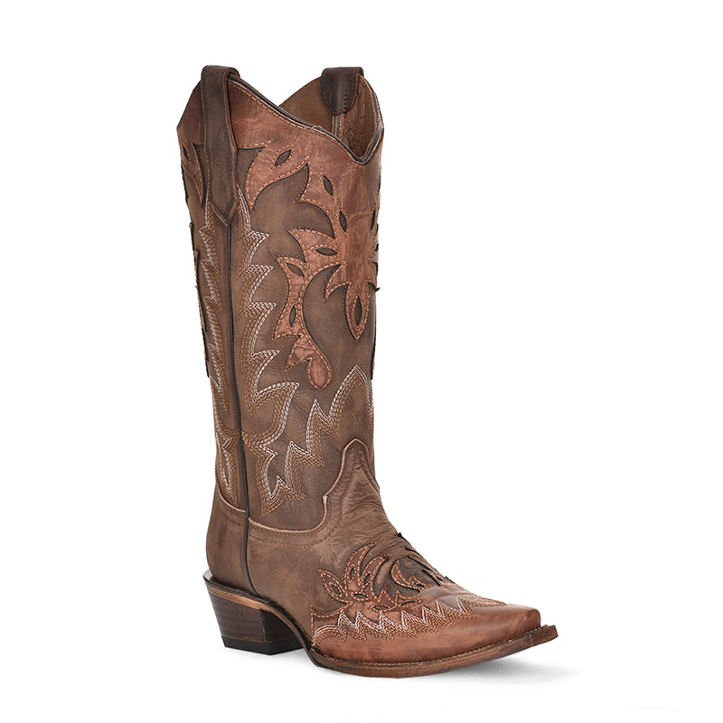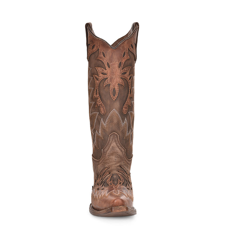 - Cognac and chocolate cowhide leather boot.