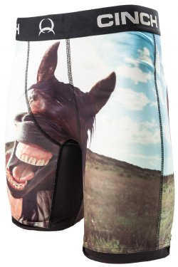 Clyde rides again! Clyde, the horse is as handsome as they get, ornery and loves to laugh his a$$ off. Every pair of CINCH boxer briefs features no-ride leg seams, tag-free design, jacquard waistband, anti-microbial treatment and lightweight, four-way stretch, moisture wicking fabric.